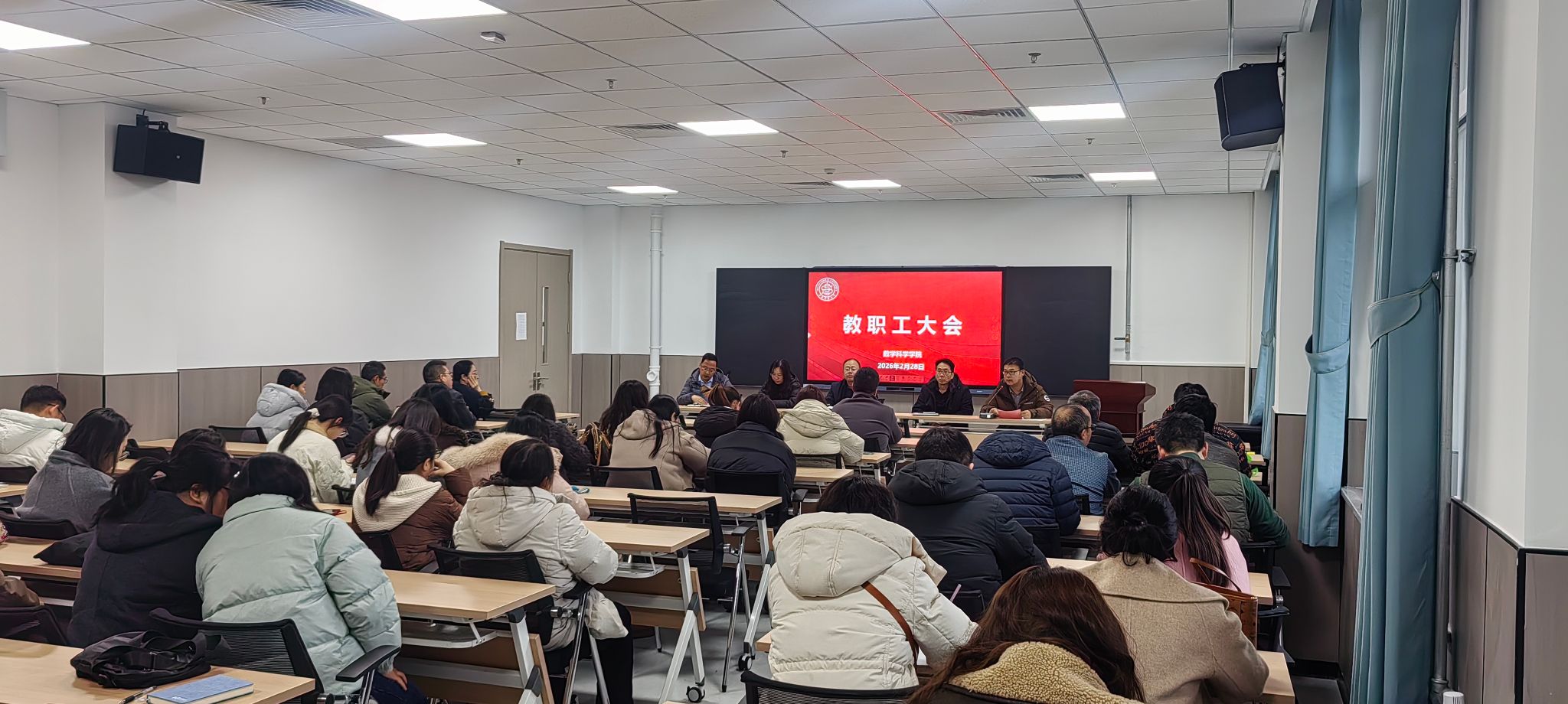 2月28日下午,数学科学学院在数理楼B608召开2026年春季学期全体教职工大会,全面部署新学期教学、科研等重点工作。学院领导班子及全体教职工参加会议,会议由院党委书记孙学虎主持。